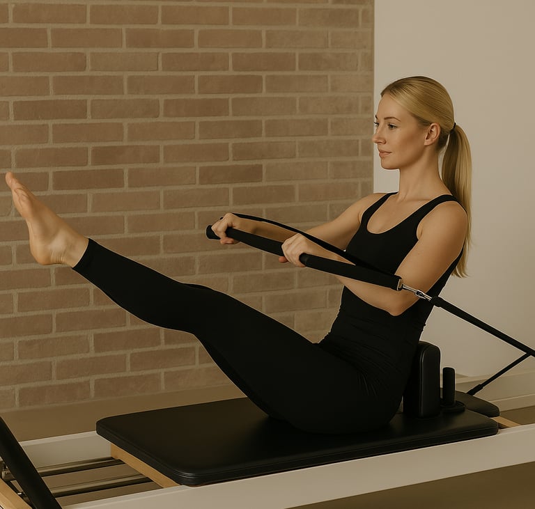 Reformer je cvičební stroj s pohyblivou plošinou, opěrkami a systémem pružin, které vytváří odpor podle zvolené intenzity. Umožňuje širokou škálu cviků v různých polohách – vleže, vestoje, na boku i v kleku – a pracuje komplexně s celým tělem.